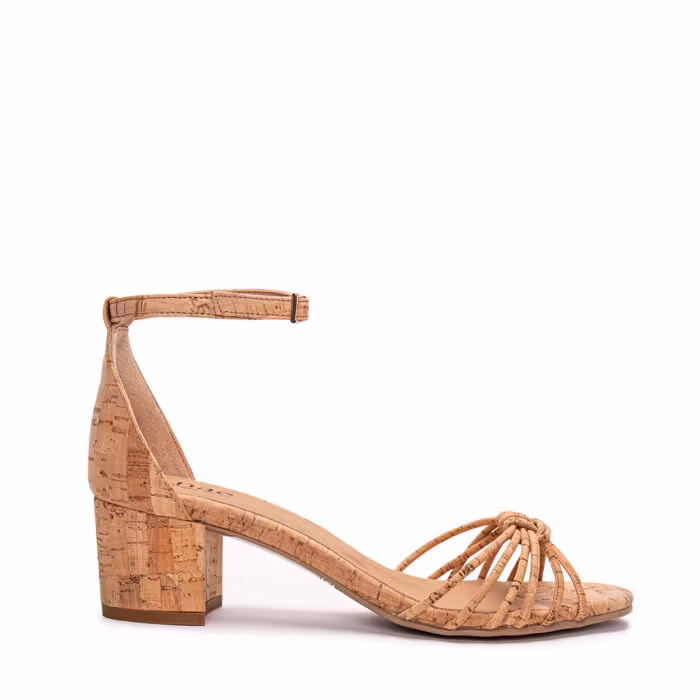 Optez pour Ange Brown, les sandales à talon toutes en liège organique certifié FSC, qui marient esthétisme et respect de la nature.
