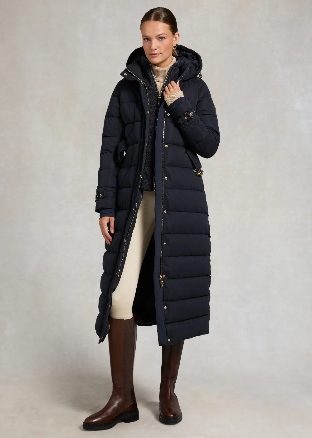 Key Features 100% Polyester Micro fibre Full length Slim fit Microfleece supersoft fabric Large baffles to body and sleeves Internal fleece gilet Elasticated waistbelt with self fabric buckle Detachable hood Embroidered sleeve badge Care Instructions Please refer to care label Code 13400225279772