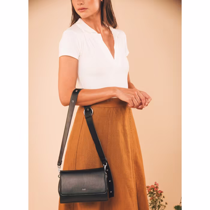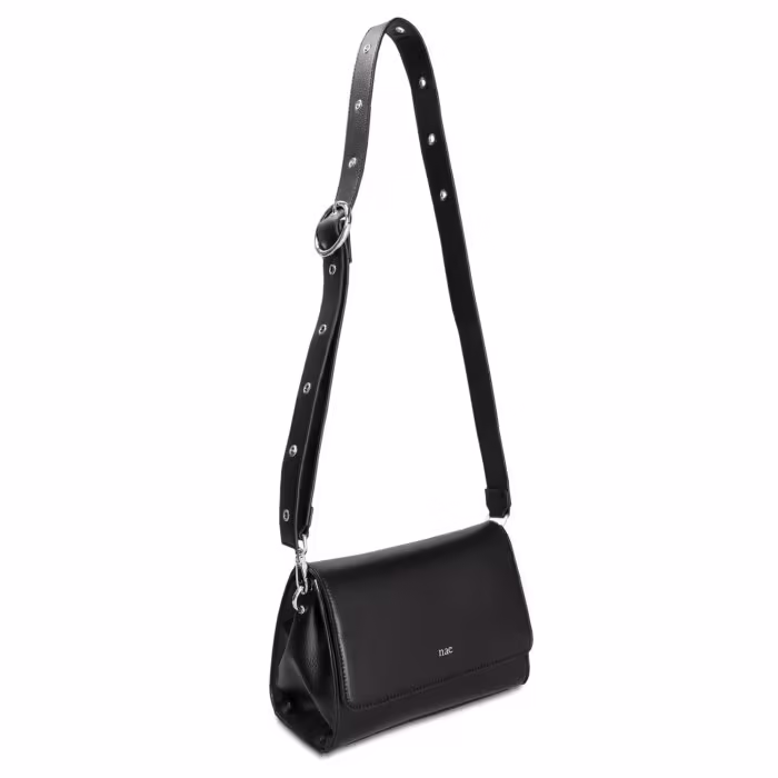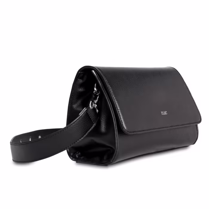 Tel un astre de cuir vegan, le sac à main taille moyenne Nori Black unit style et éthique. Une pièce exquise, telle une étoile filante sur le firmament de la mode.