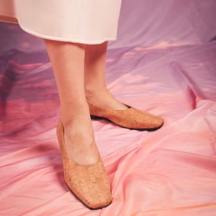 Incorporez la légèreté à votre collection avec Melita Brown, les ballerines véganes à bout carré confectionnées en liège biologique.
