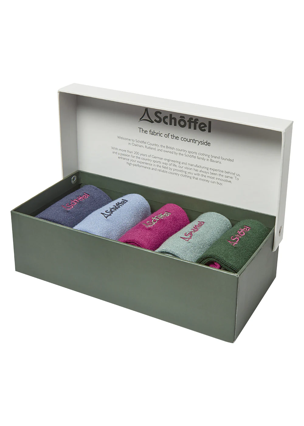 Key Features Bamboo mix fabric 79% Bamboo viscose, 20% nylon, 1% nylon Regular fit Schöffel branding x5 pairs Gift box Machine washable Code20-3962