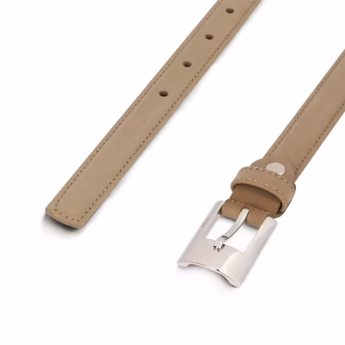 Faites la découverte de BeltBaga Beige, une ceinture fine pour femme en nobuk végan, qui conjugue subtilité, sophistication, tout en respectant notre belle planète.