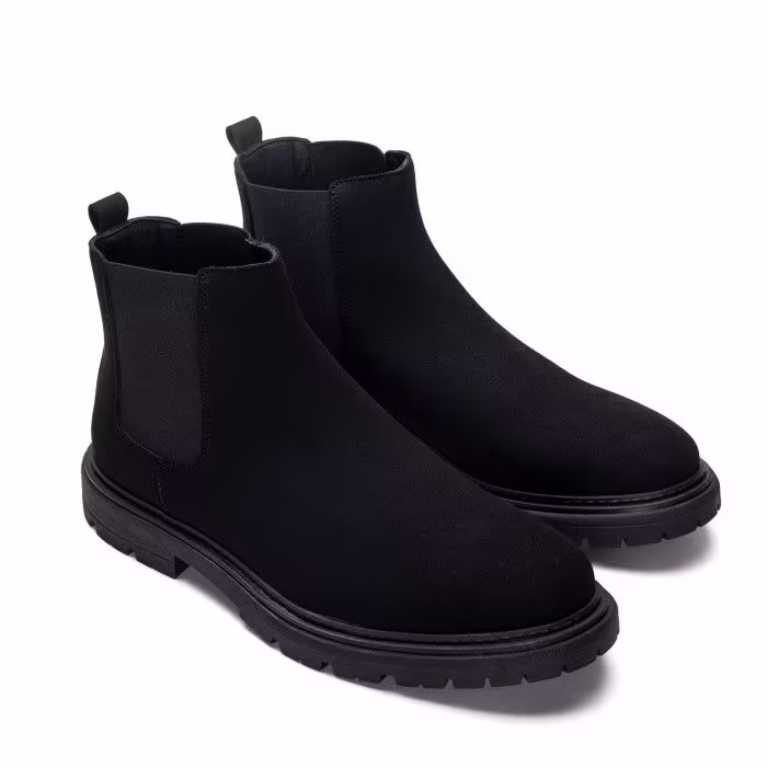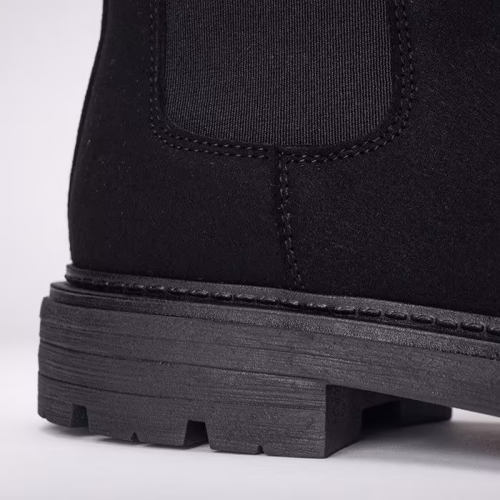 Voici les Faber Black : des bottes chelsea homme en daim vegan, fusionnant éthique, confort et esthétique, sans aucun compromis.