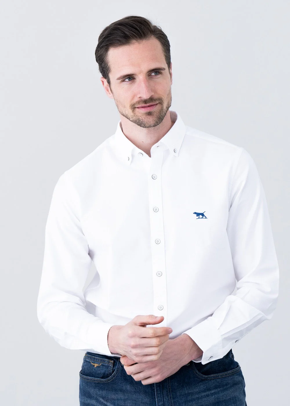 - Signature pointer dog embroidery at the chest