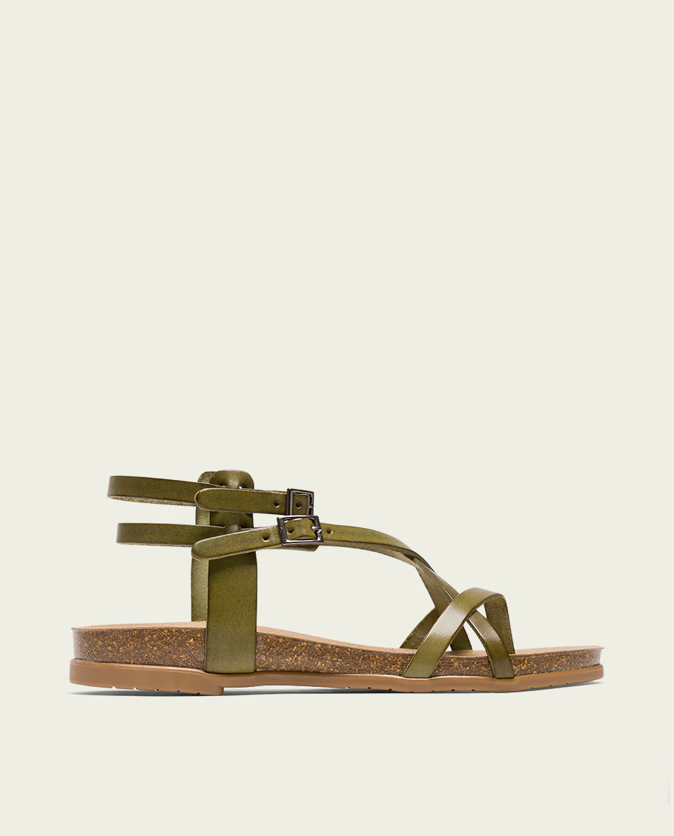 Sandale thong plate avec semelle ergonomique bio et brides croisées. Double boucle latérale réglable à la cheville pour plus de confort et de sécurité lors de la marche. Sa semelle intérieure rembourrée assure un confort à chaque pas et sa semelle antidérapante permet une plus grande stabilité. Fabrication artisanale 100% en Espagne.