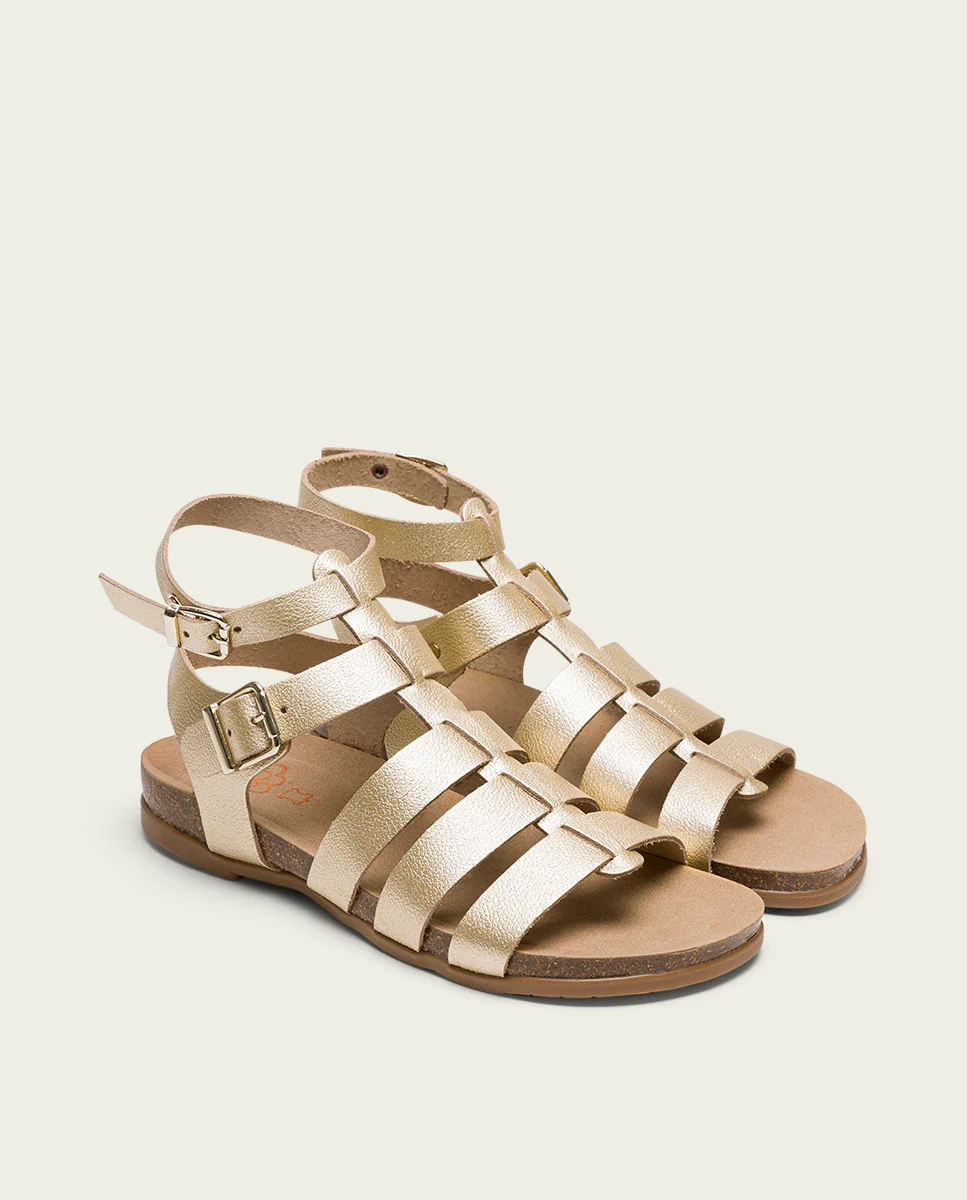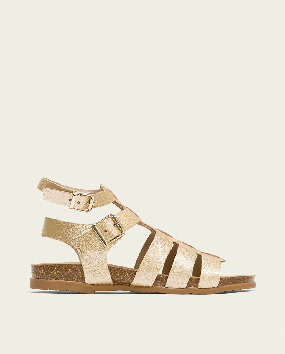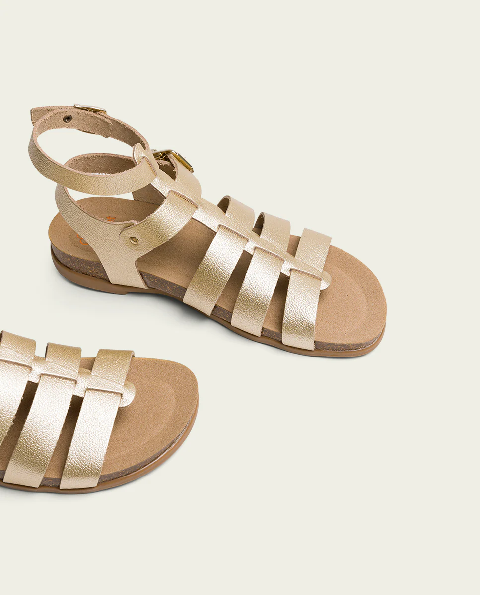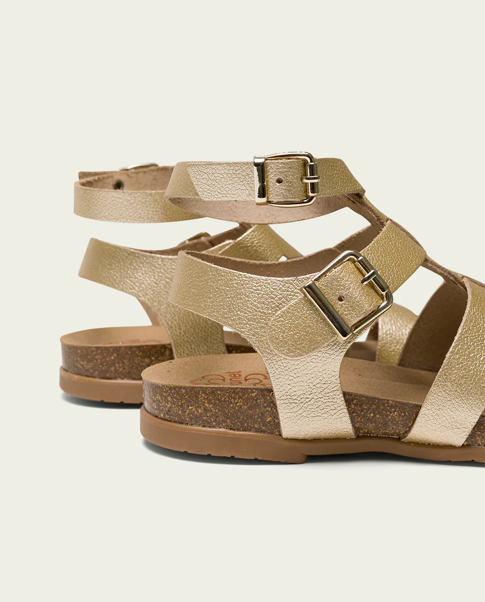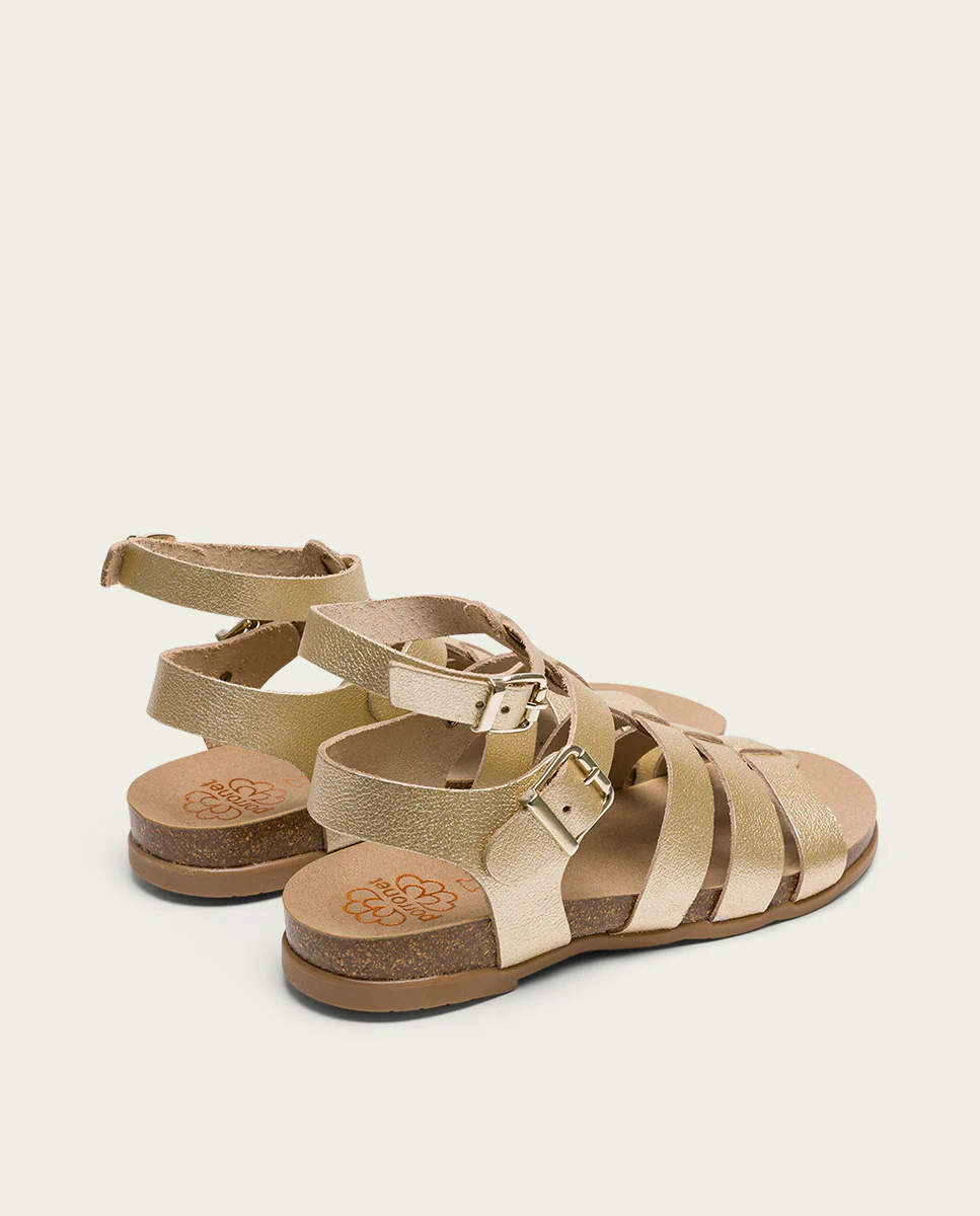 SANDALE PLATE BIO EN CUIR DORÉ SILVIA