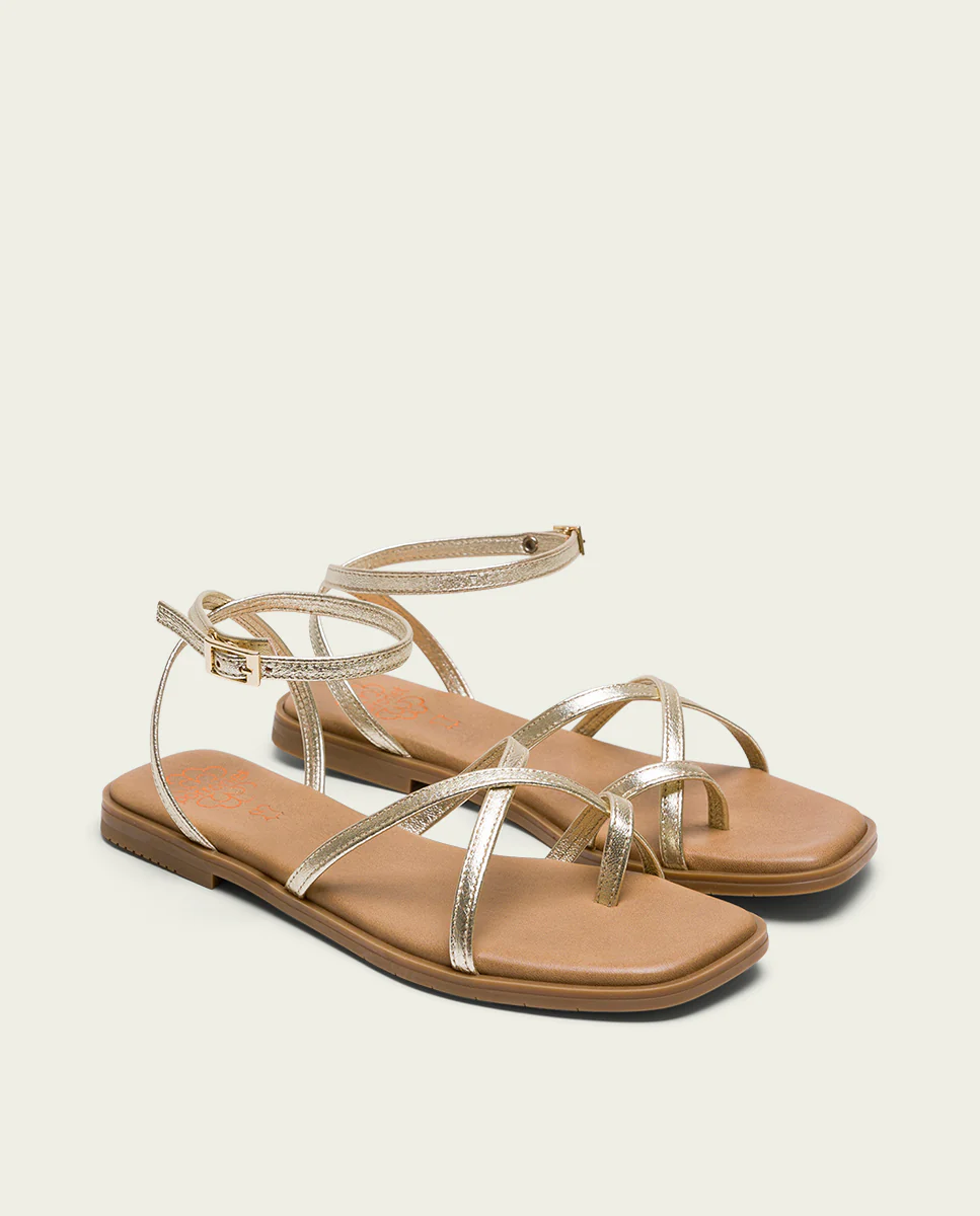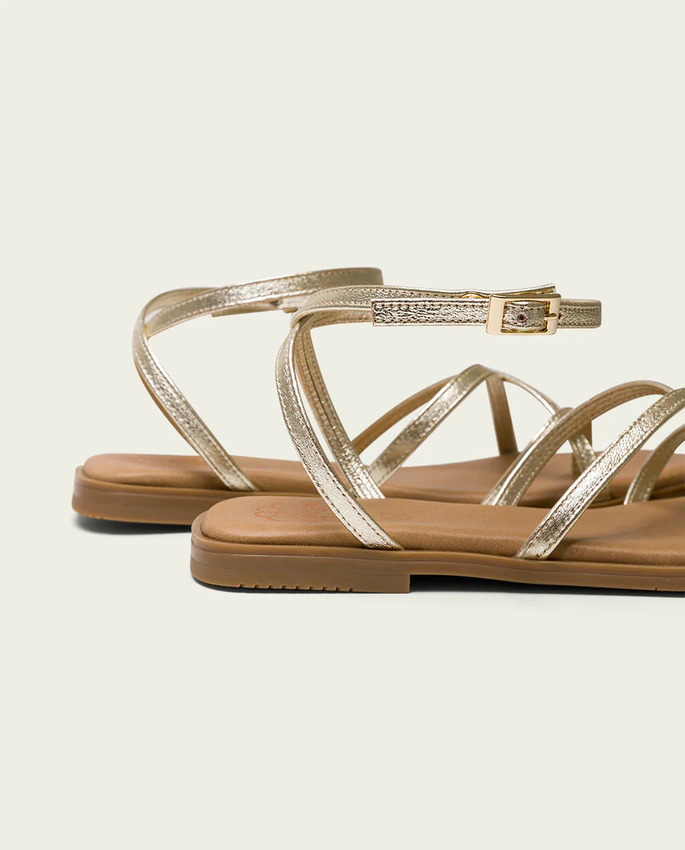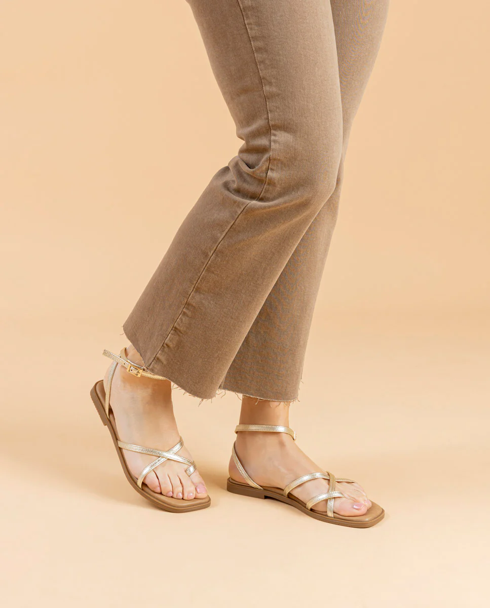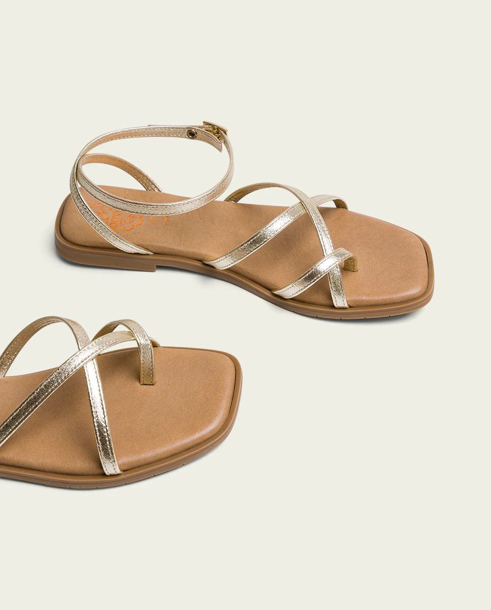 SANDALE PLATE BIO CUIR DORÉ SONIA
