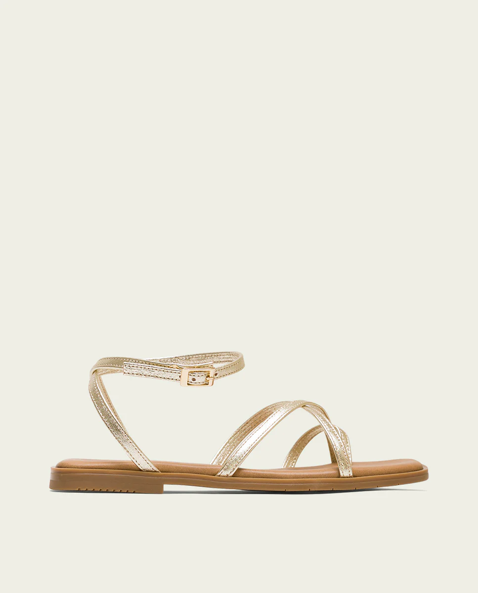 SANDALE PLATE EN CUIR AVEC BRIDES DORÉES VALENTINA