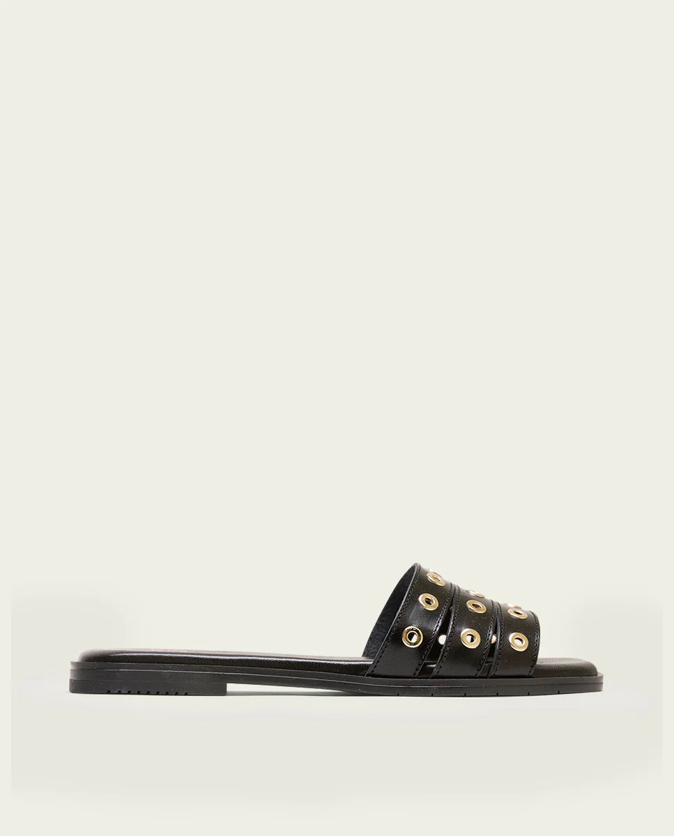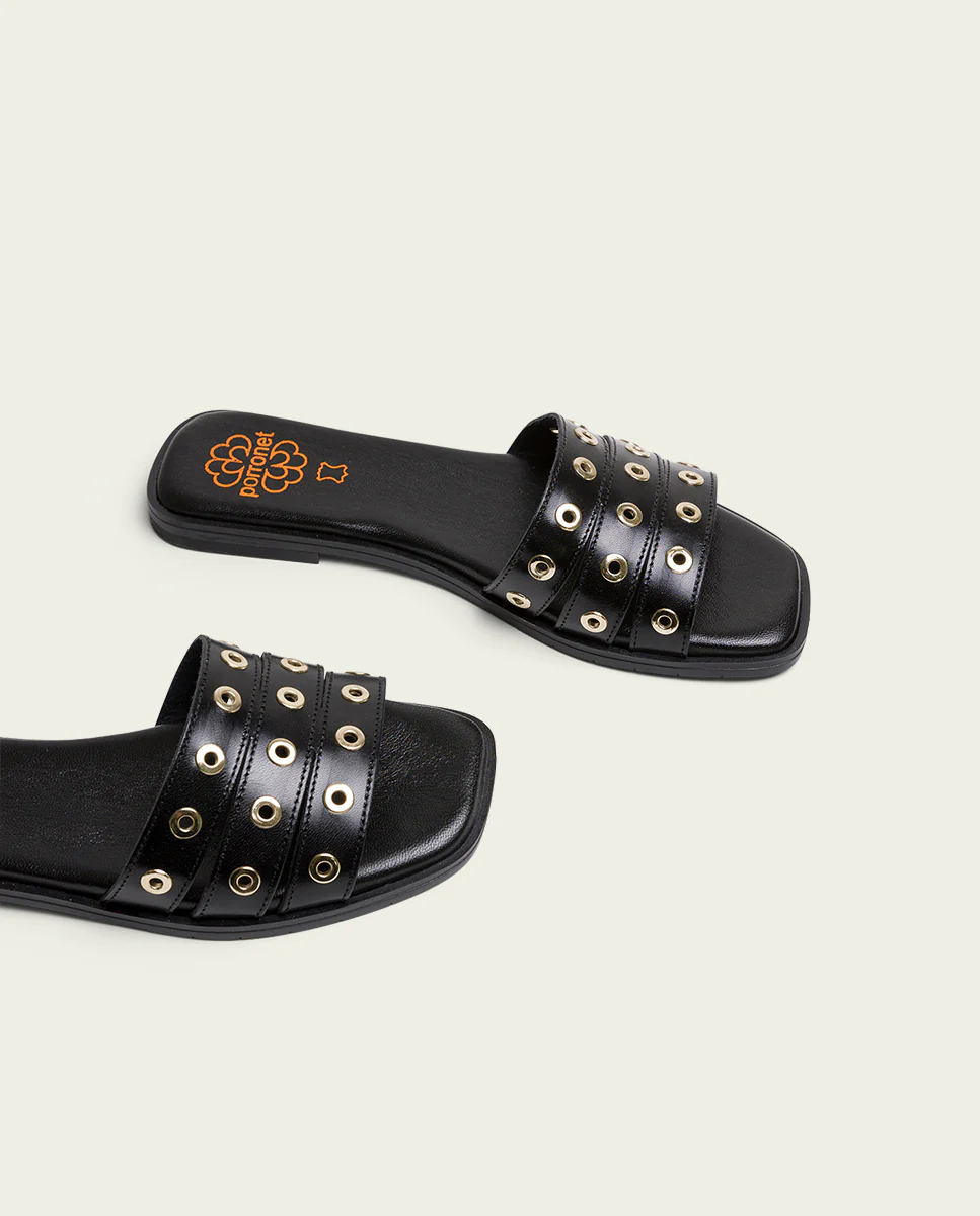 SANDALE PLATE EN CUIR AVEC CLOUS NOIR VENUS