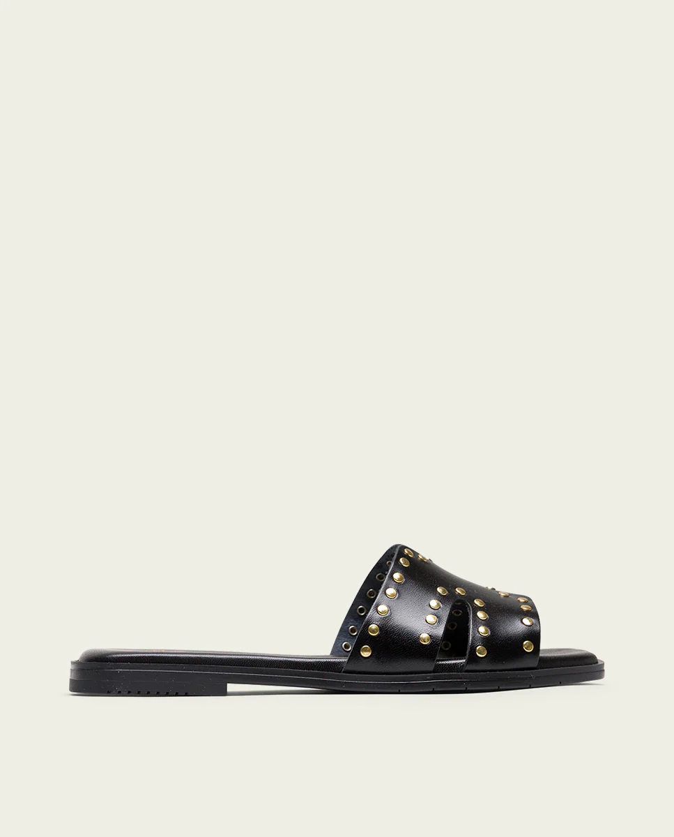 SANDALE PLATE EN CUIR AVEC CLOUS NOIRS VANESA