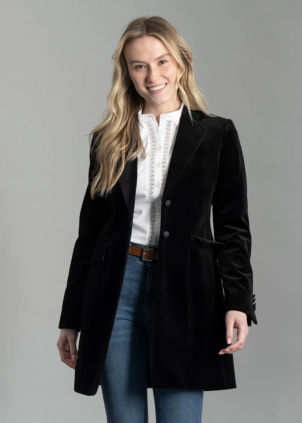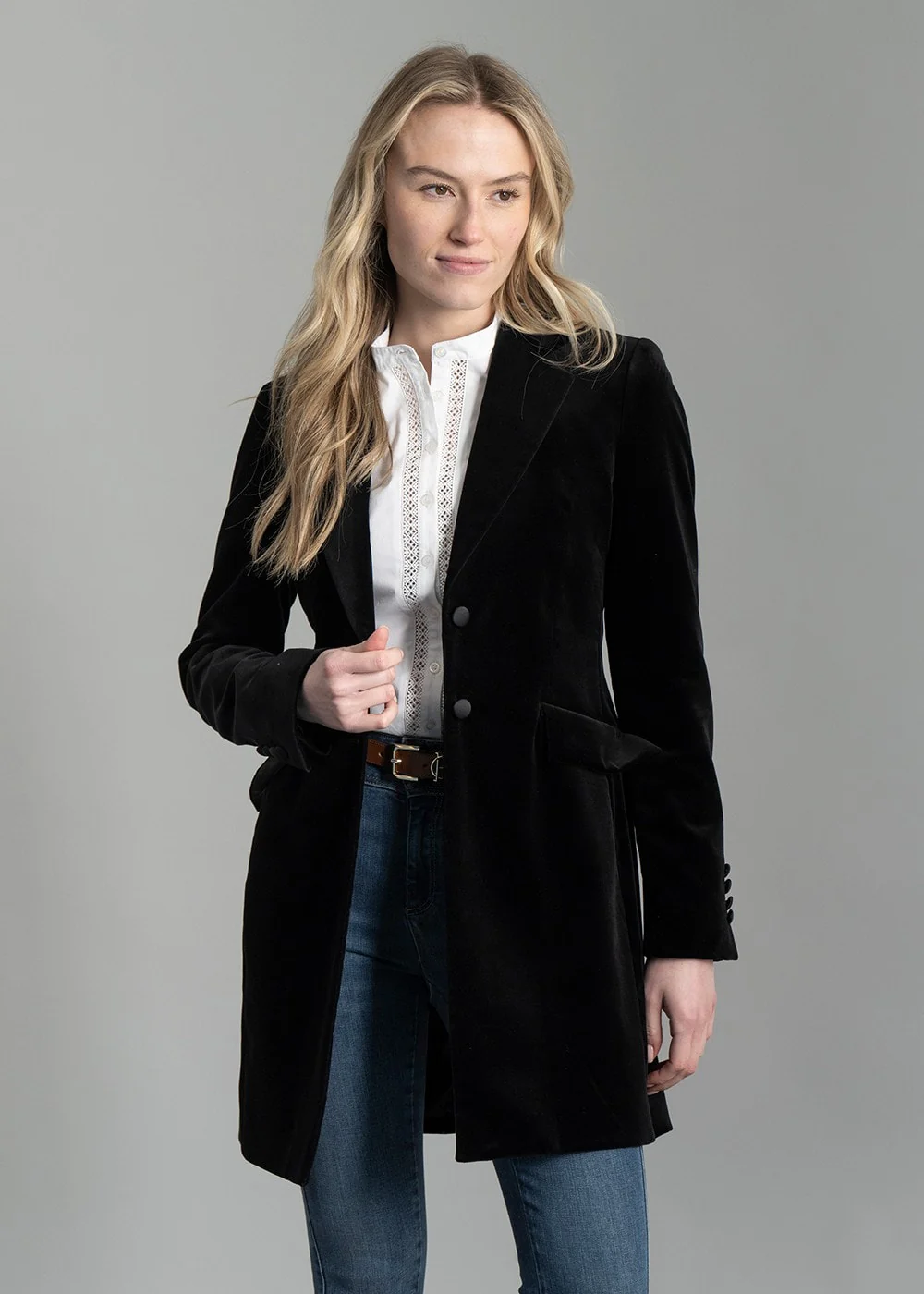 The Vivien Velvet Coat by Taylor and Twill will instantly sophisticate an outfit for a smart day or evening out. It can be dressed down with a pair of jeans and a plain shirt, or an even plainer white t-shirt. Wear with a soft cashmere sweater in the winter.